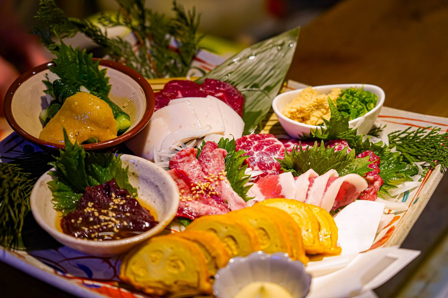 熊本県産・国産にこだわり、厳選した商品のみを使用し、最もおいしい食べ方を追求し提供しています。熊本県特産品である、有名な馬刺し/赤毛和牛「あか牛」/国産鶏の焼き鳥を心ゆくまでご堪能下さい。